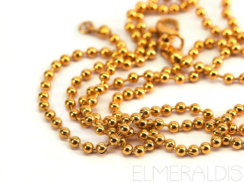 Kugelkette – Ball Chain – Gliederkette Form: Kugeln mit Karabinerverschluss Kugelgröße: ca. 2,5 mm Durchmesser Länge: ca. 80 cm incl. Karabiner Menge: 1 Stück Farbe: Gold goldfarben Material: Edelstahl poliert und beschichtet Herkunft: EU