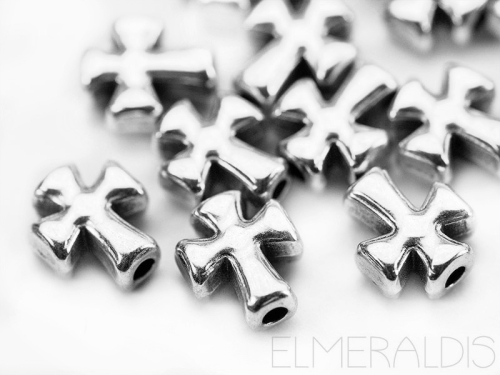 Metallperlen - Schiebeperlen - SliderForm: Kreuz, Templerkreuz, MalteserkreuzGröße: ca. 8,0 x 8,0 mmDicke: ca. 3,0 mmFädelloch: ca. 1,2 mmMenge: 4 StückFarbton: silberfarbenMaterial: Metall, Herkunft EU