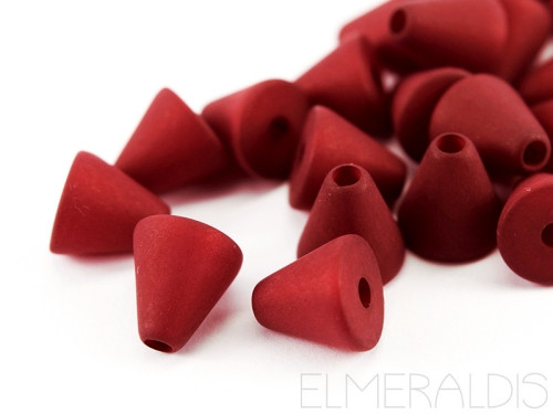 Polaris Perlen in matt mit KleinlochMenge: 5 StückForm: Kegel bzw. KonusGröße: 10 mm x 10 mmLoch: ca. 2,5 mmFarbe: rubin rotMaterial: Kunststoff, Acryl