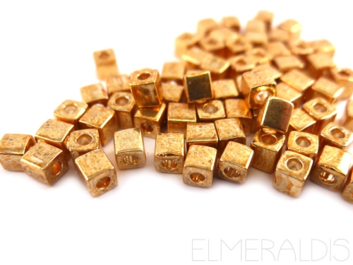 Die 3 mm grossen Würfel oder auch Cubes der Firma Miyuki aus Japan sind Glasperlen von besonders hoher Qualität. Sie haben ein rundes Fädelloch mit einem Durchmesser von ca. 1,3 mm.