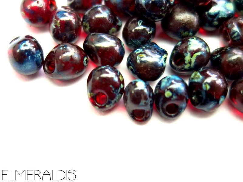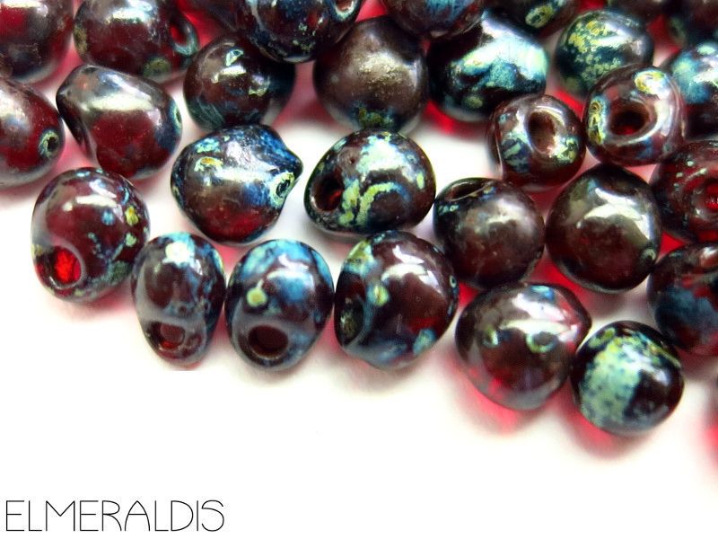 Magatamas – Drop Beads – Drops Größe: 3,4 mm Form: Drop - tropfenförmige Einlochperle Loch: ca. 0,8 mm Menge: 10g (ca. 210 Stück) Farbe: DP-4504 (Garnet Transparent Picasso) Material: Glasperlen, Firma MIYUKI, Japan