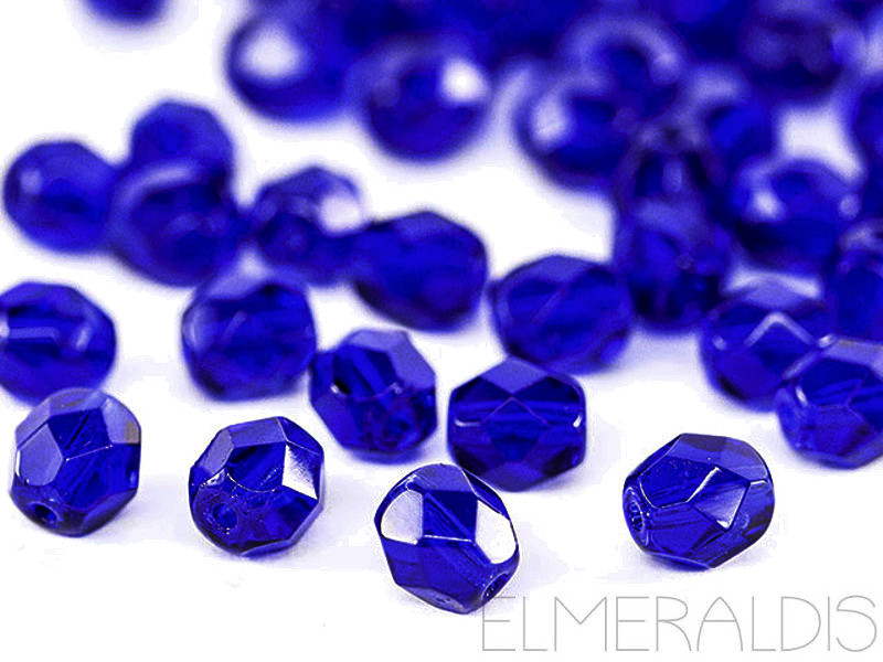 3mm feuerpolierte Glasperlen Cobalt dunkelblau 50x
