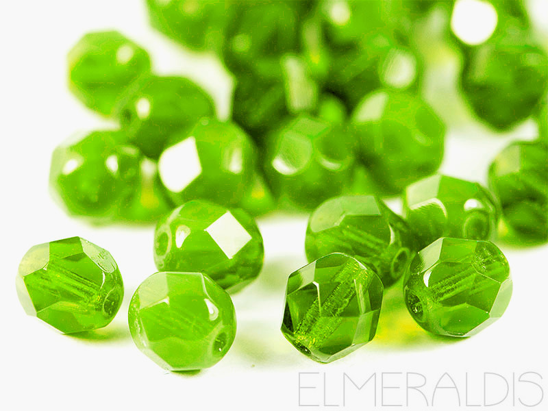 3mm feuerpolierte Glasperlen Milky Dark Peridot hellgrün 50x