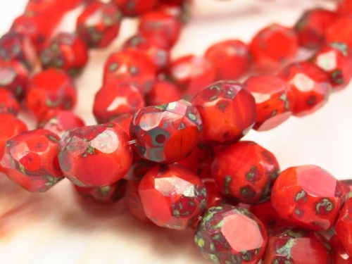 Die 8 mm feuerpolierten Glasschliffperlen faszinieren durch ihren herrlichen Glanz und ihre besondere Facettierung. Die Perlen werden im Druckofen hergestellt und in einer Trommel abgeschliffen. Sie verdanken ihren Namen einem ganz speziellen abschliessenden Politurverfahren, bei dem die fertigen Perlen auf Tonplatten platziert und in einem Ofen durch Hitze von winzigen Kratzen auf der Oberfläche befreit werden.