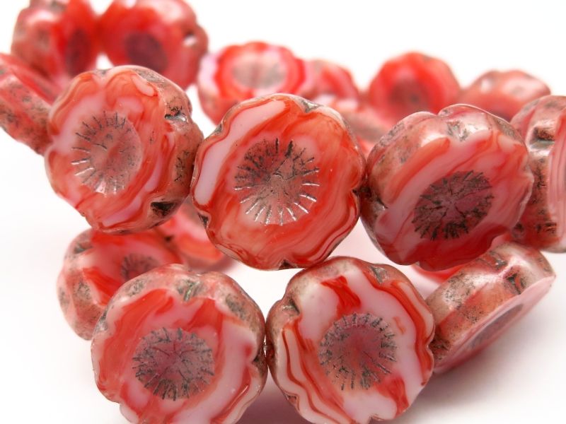 Flowers Blumen Red White Gray Picasso Glasperlen 2x