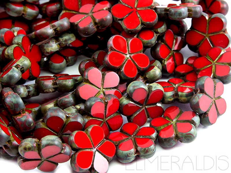 Flowers Blumen Red Opaque Picasso rot Glasperlen 2x