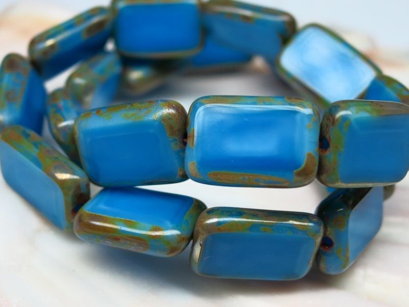 Rectangle Beads Blue Picasso Glasperlen 2x
