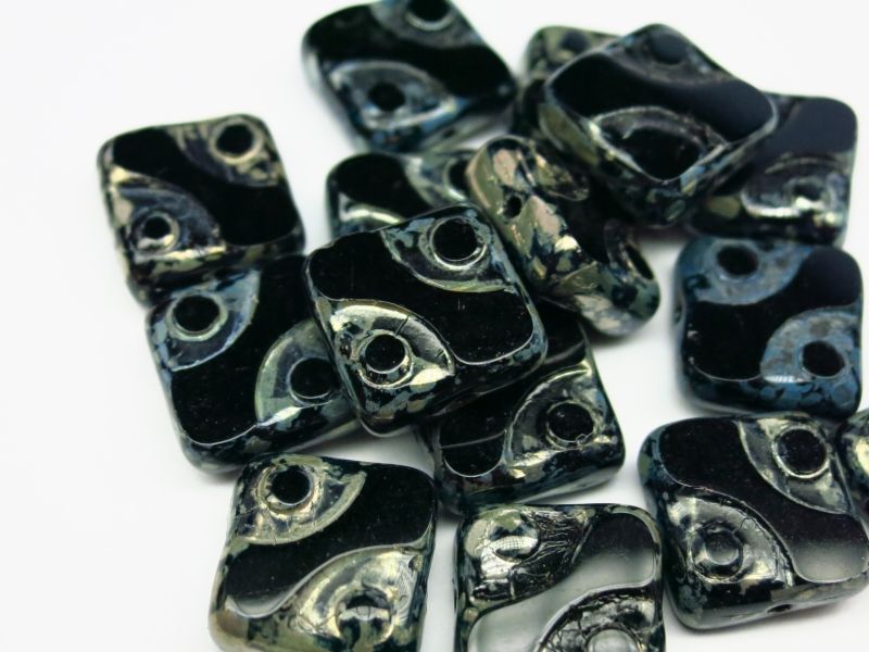 Square Beads Black Jet Picasso schwarz Glasperlen 2x