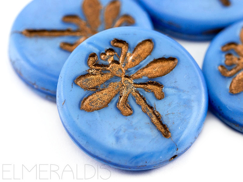 23mm Dragonfly Beads Blue Matte Bronze Picasso blau 1x