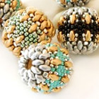Fädelanleitung für kugelförmige Anhänger mit Honeycomb Beads, Super Duos, 4 mm Firepolished Beads und Seedbeads (Rocailles).